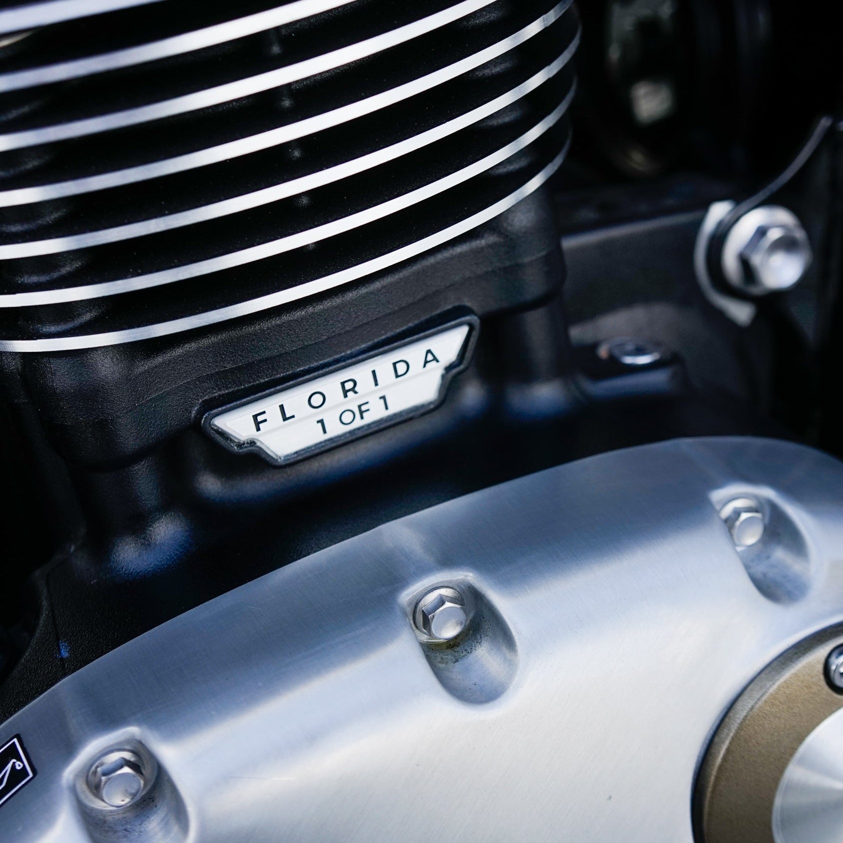 Die Florida Edition ist weit mehr als nur ein Motorrad – sie ist ein Statement. Jedes Detail wurde von unserem Team mit Leidenschaft und höchster Präzision umgesetzt. Vom umgebauten Tank, der auf der Basis einer Royal Enfield Interceptor entstand und eine besonders schlanke Linie schafft, bis hin zu handgefertigten Emblemen aus CNC-Fräsung, die die Exklusivität des Bikes unterstreichen.