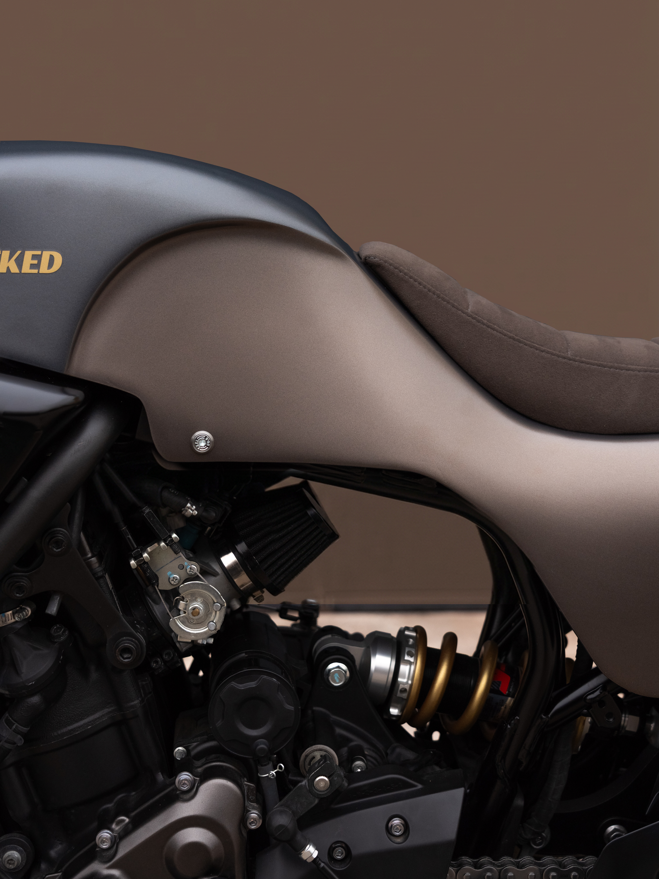 Wir haben das Motorrad vollständig zerlegt und neu aufgebaut. Ziel war ein deutlich leichteres, präziseres und kompromissloseres Fahrerlebnis – kombiniert mit einer klaren, eigenständigen Formsprache.