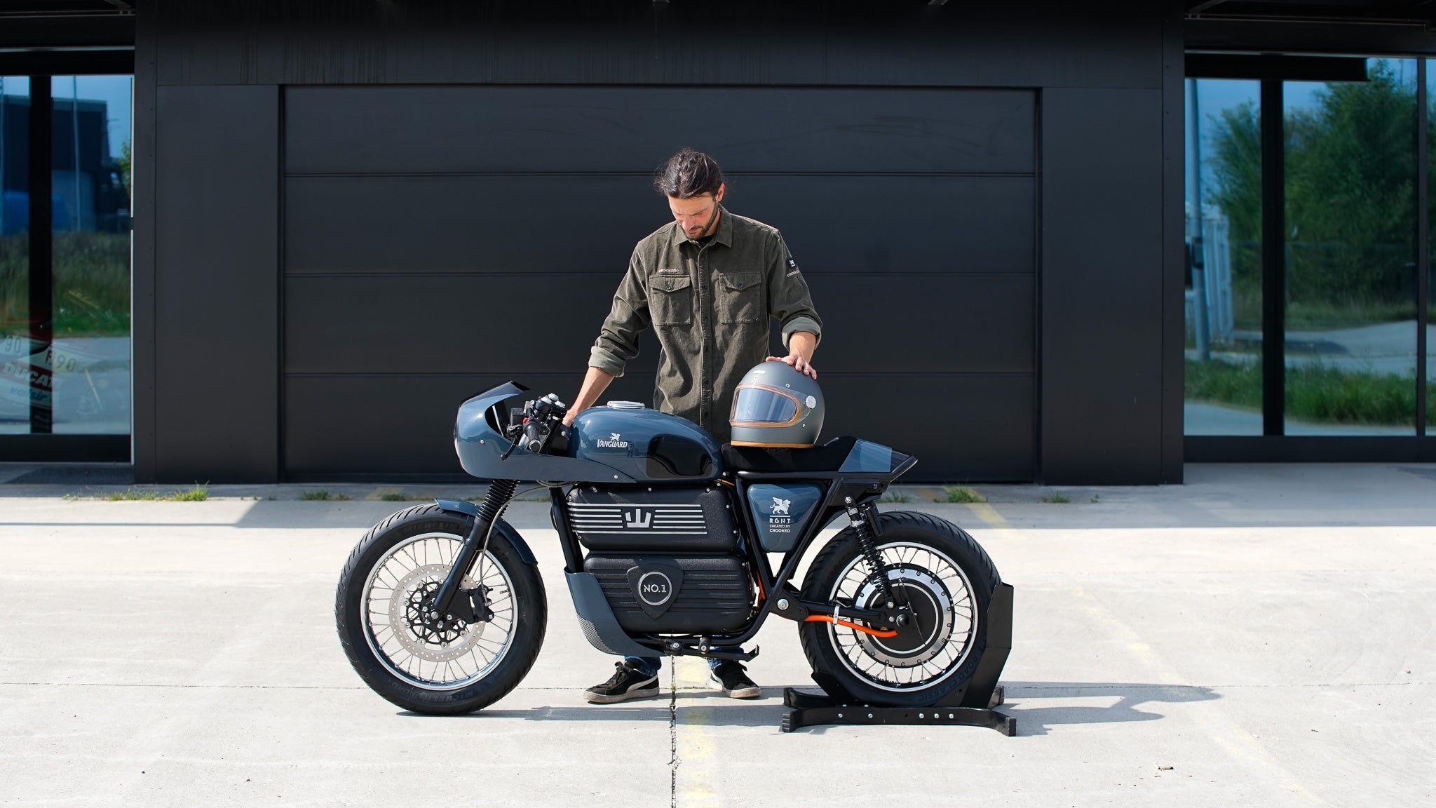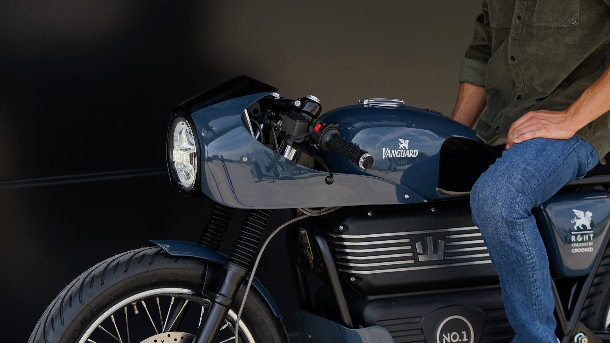 Eine begrenzte Anzahl an Projekten hält Crooked jedes Jahr für spezielle Firmen Projekte frei. In diesem Jahr wurde eine Anfrage aus Amsterdam, Niederlande gestellt. Die Sommer Kollektion 2025 soll ein spezielles Bike bekommen. Die Wahl fiel auf das RGNT Classic SE, eines der wohl klassischsten Elektromotorräder auf dem Markt. Schon im Serienzustand wirkt das Bike wie aus einer anderen Zeit, nur eben ohne röhrenden Verbrenner. Crooked Motorcycles hat sich die Basis geschnappt und ein Design kreiert, das nach 70er-Jahre-Rennstrecke schreit. So gab’s eine maßgeschneiderte Verkleidung, die sich elegant um den LED-Scheinwerfer schmiegt. Dazu kamen niedrige Clip-ons und ein frisiertes Heck. Motogadget steuerte Blinker bei: vorne die mo.blaze bar-end Signale, hinten mo.blaze tens3 Multifunktions-LEDs.